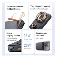 این پاوربانک با قابلیت شارژ وایرلس، امکان شارژ همزمان اپل واچ و دستگاههای موبایل سازگار با فناوری شارژ بیسیم را فراهم میکند. شما میتوانید بدون نیاز به کابل، دستگاههای خود را به راحتی شارژ کنید.